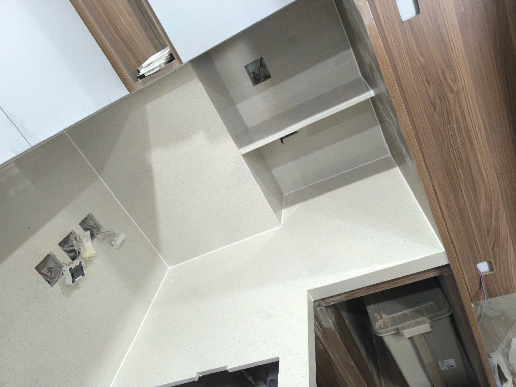 Đá nung kết chấm pi thuộc dạng men cao cấp full màu chấm từ trên đến bên dưới, nên các hạng mục bo cong cạnh mài lên giống như mặt đá. Chống thấm, chống ố …